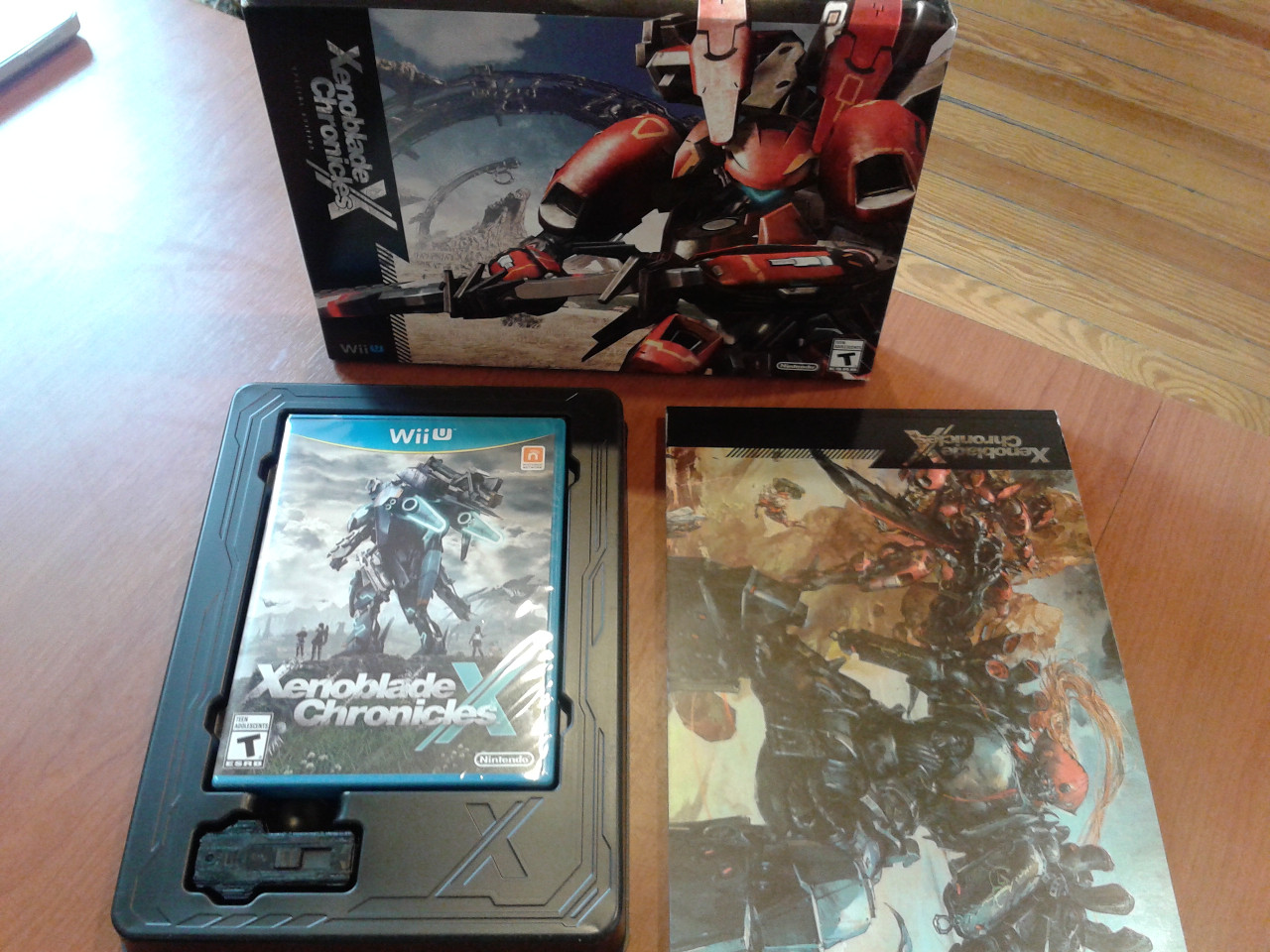 Un vistazo a la Xenoblade Chronicles X Special EditionColeccionismoEdiciones Especiales por A. Quatermain - 11 diciembre, 2015 Sí, acabo de recibir una Navidad “adelantada”, ya que por fin podré ponerle las manos encima a mi Xenoblade Chronicles X Special Edition.Desde la primera vez que vi la Xenoblade Chronicles X Special Edition disponible, la reservé a toda velocidad. Fue minutos después que se anunció su existencia que la aparté, conociendo de antemano que este tipo de productos suelen fabricarse en cantidades muy limitadas. No quería que me pasara lo mismo que con otras iniciativas similares de Nintendo.Debo decir que cuando empecé a ver que los miembros de mi timeline en Twitter publicar fotos de este juego de Monolith Soft y comentar lo mucho que lo estaban disfrutando, algo dentro de mí moría poco a poco. ¿Valía la pena esperar por la edición especial? Varias ideas pasaban por mi atribulada cabeza, y trataba de borrar de mi mente todo lo que veía. Hasta que por fin, el día esperado llegó.En unas pocas horas tendré en mis manos la Xenoblade Chronicles X Special Edition, después de que mi hermano la traiga desde su oficina. En base a las fotografías que él me compartió, puedo ver que la espera bien valió la pena. Pueden verlas a continuación en la siguiente galería, donde se aprecia no solo la copia física del juego, sino también el libro de arte, la memoria USB con una selección del OST de este título y la tarjeta decorativa incluida. Es sin duda una de las ediciones más cuidadas publicadas por Nintendo de América. Aunque la memoria en cuestión tiene algunos “problemillas” (que he señalado previamente), todo lo que acompaña a Xenoblade Chronicles X es digno de atesorarse. ¿Les interesa tenerla? Hasta donde tengo entendido, todavía había unidades disponibles en Amazon, gracias a un nuevo embarque enviado por Nintendo.El único problema es la actual fluctuación del dólar, que puede encarecer a la Xenoblade Chronicles X Special Edition más de la cuenta. Pero de que vale la pena, así como el propio título, es algo seguro. Hará muy buen juego con el libro de arte de esta obra del diseñador Tetsuya Takahashi, que igualmente reservé desde hace tiempo. Obviamente, cuando esté entre mis manos compartiré también algunas fotos.Please follow and like us: